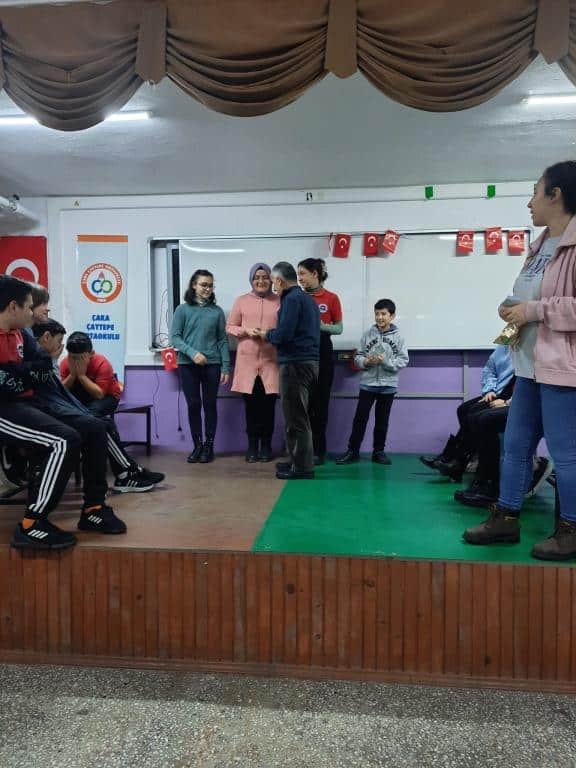 Okulumuz Matematik Öğretmeni Merve Sonay ÇEKÜÇ ÇEBİ tarafından Ocak Ayı Faaliyetleri kapsamında ''Dede Korkut Hikayeleri ile ilgili Anlat Bakalım Etkinliği'' hazırlanmış ve öğrencilerimiz gruplar halinde yarışmışlardır.Yarışmada okul panomuzda yer alan Dede Korkut Hikayelerinde geçen kelimeler belirlenmiş ve öğrencilerin sırayla grup arkadaşlarına kelimeleri anlatması ve bilinmesi amaçlanmıştır. En çok puanı alan grup birinci olmuş, Okul Müdürümüz Aydın AVCI tarafından ''Hediye Çeki'' ile ödüllendirilmiştir.Yarışma boyunca öğrencilerimiz oldukça keyifle yarışmışlardır.Emeği geçen arkadaşlarımızı tebrik ediyoruz.